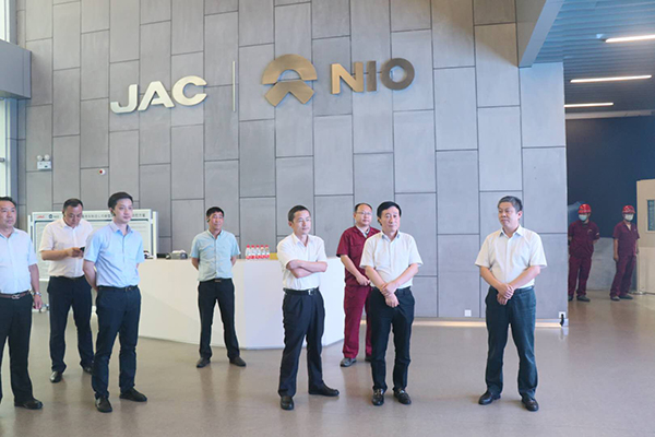 郭景彬董事長(zhǎng)受邀先后參觀了江淮汽車蔚來(lái)工廠、新能源汽車總裝車間,體驗(yàn)了新能源汽車和智能制造技術(shù)運(yùn)用,了解到了現(xiàn)代汽車生產(chǎn)的工藝流程、裝備技術(shù)、智能制造和環(huán)??刂啤?jù)介紹,該蔚來(lái)基地規(guī)劃年產(chǎn)能10萬(wàn)輛,車身車間可通過(guò)307臺(tái)機(jī)器人實(shí)現(xiàn)車身主要連接100%自動(dòng)化,車間整體自動(dòng)化率97.5%,是目前國(guó)內(nèi)最新的全鋁車身生產(chǎn)線,蔚來(lái)的兩款量產(chǎn)車型ES8和ES6均在這里生產(chǎn)制造。