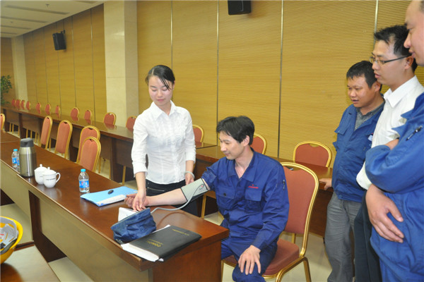 中心老師為員工測(cè)量血壓