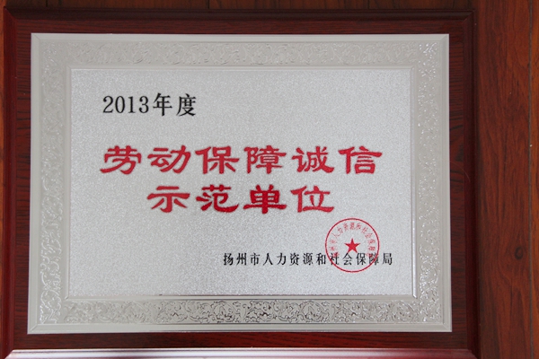 ? ? 近日,揚州海昌榮獲“2013年度勞動保障誠信示范單位”榮譽稱號,這是揚州海昌自2012年試運行以來首次獲此榮譽。