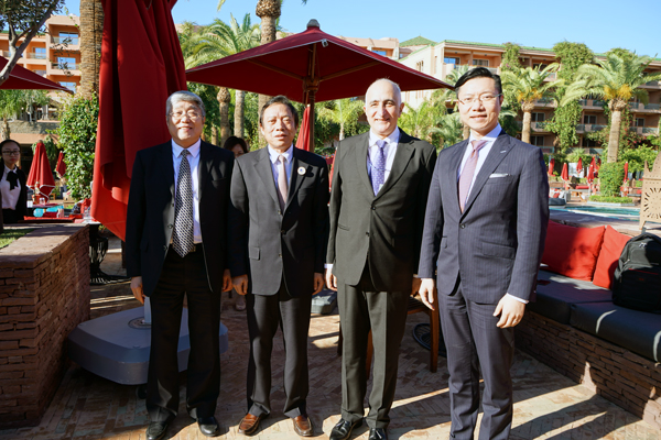 ??? 11月7日下午,經(jīng)過20多小時長途飛行抵達(dá)馬拉喀什,紀(jì)勤應(yīng)總經(jīng)理一行受到摩中商會會長金曼德先生、摩洛哥外貿(mào)銀行國際部主管Abdou先生的熱烈歡迎,雙方在下榻的酒店進(jìn)行了會晤。