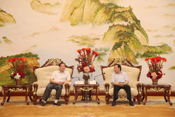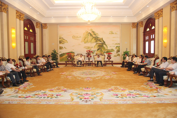 ? ? 簽字儀式前,紀(jì)勤應(yīng)總經(jīng)理在海螺國際會議中心海螺廳會見楊維縣長一行。