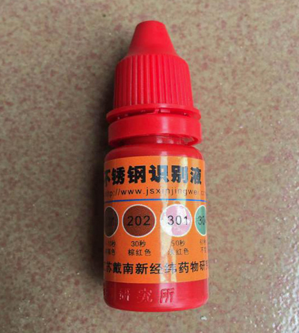 泫氏厂家对不锈钢卡箍材质采用光谱分析仪进行检测;用户也可采用不锈钢识别液进行鉴定,这是一种通过识别卡箍材质是否含镍来判断劣质200系列卡箍和300系列卡箍的简易方法,如图所示。